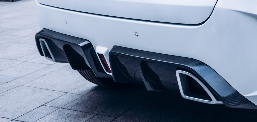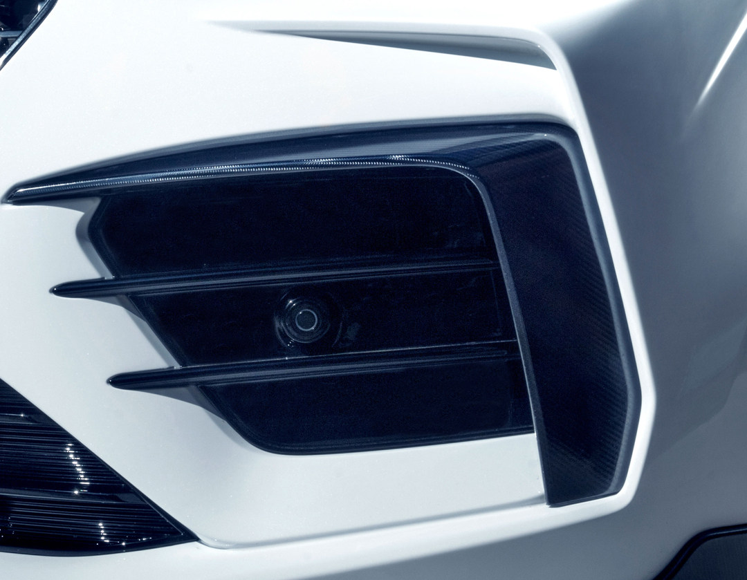 下方的扰流板使用碳纤维的设计,除了部分性能车型,几乎没有厂家在这个级别民用车上使用碳纤维这种材质。