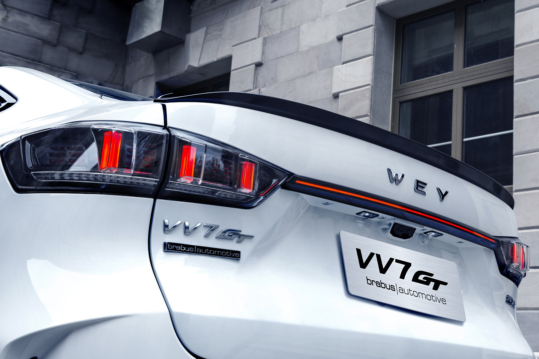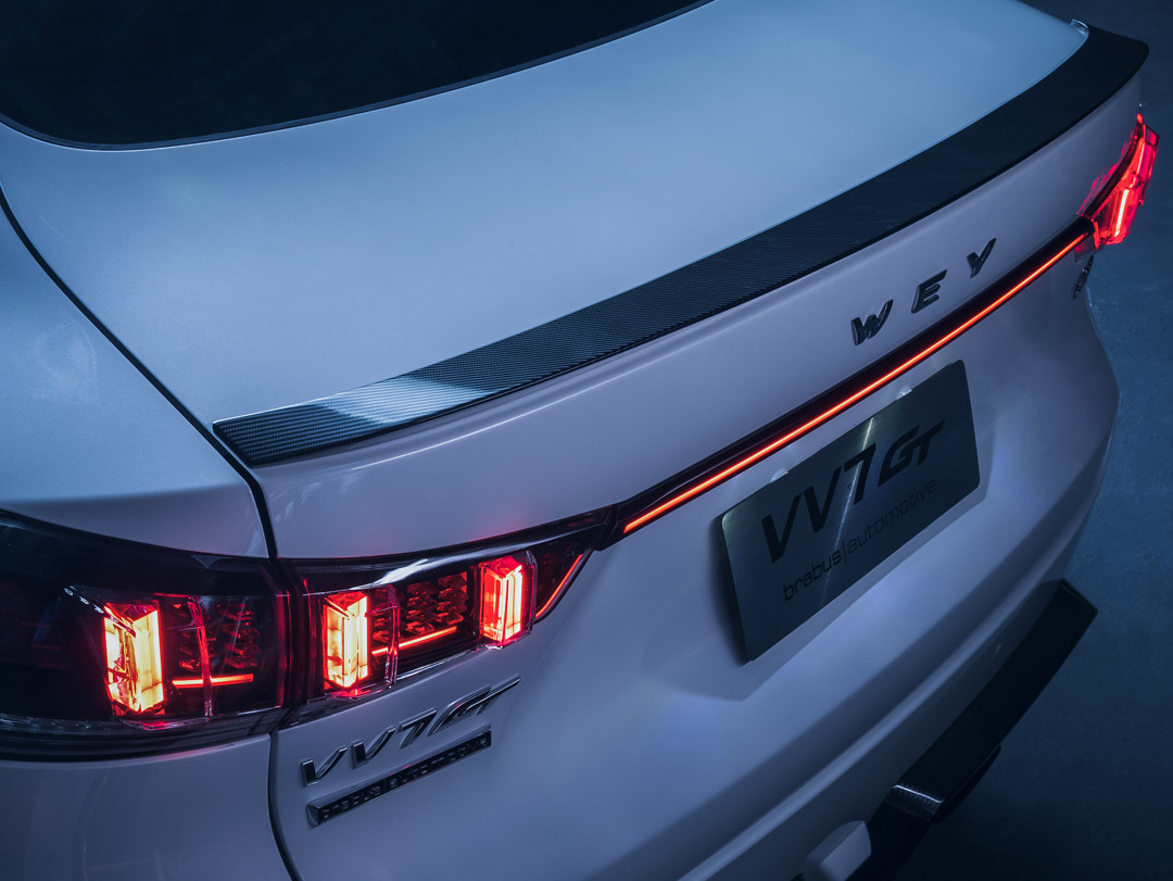 后包围也是区别于普通版车型的地方,经过巴博斯处理的包围明显更加动感。实际上,这套包围保留了VV7 GT普通版的设计,例如正中央的后尾灯以及两侧的反光板。除此以外,碳纤维材质的仿扩散器的装饰让车辆的运动感增强了不少。出乎意料的是,该车采用隐藏式排气管,后包围上的两个银色装饰件真的仅仅是装饰而已。