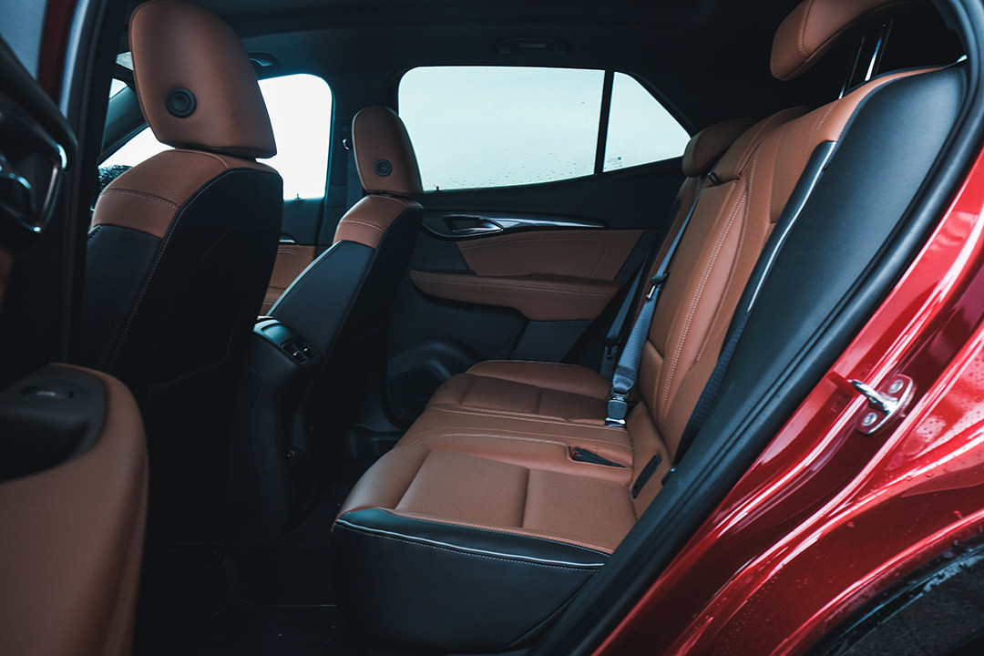 在乘坐体验方面,采用运动化造型设计的前排座椅包裹性表现出色,填充物比较厚实,整体乘坐舒适度感受不错。至于后排空间,虽然新车轴距较昂科威增长了29mm,但实际上后排乘坐空间表现并未如预期中变得更好;不过幸运的是头部空间并未受到运动化车顶造型的影响,整体空间表现尚可,不过不失。
