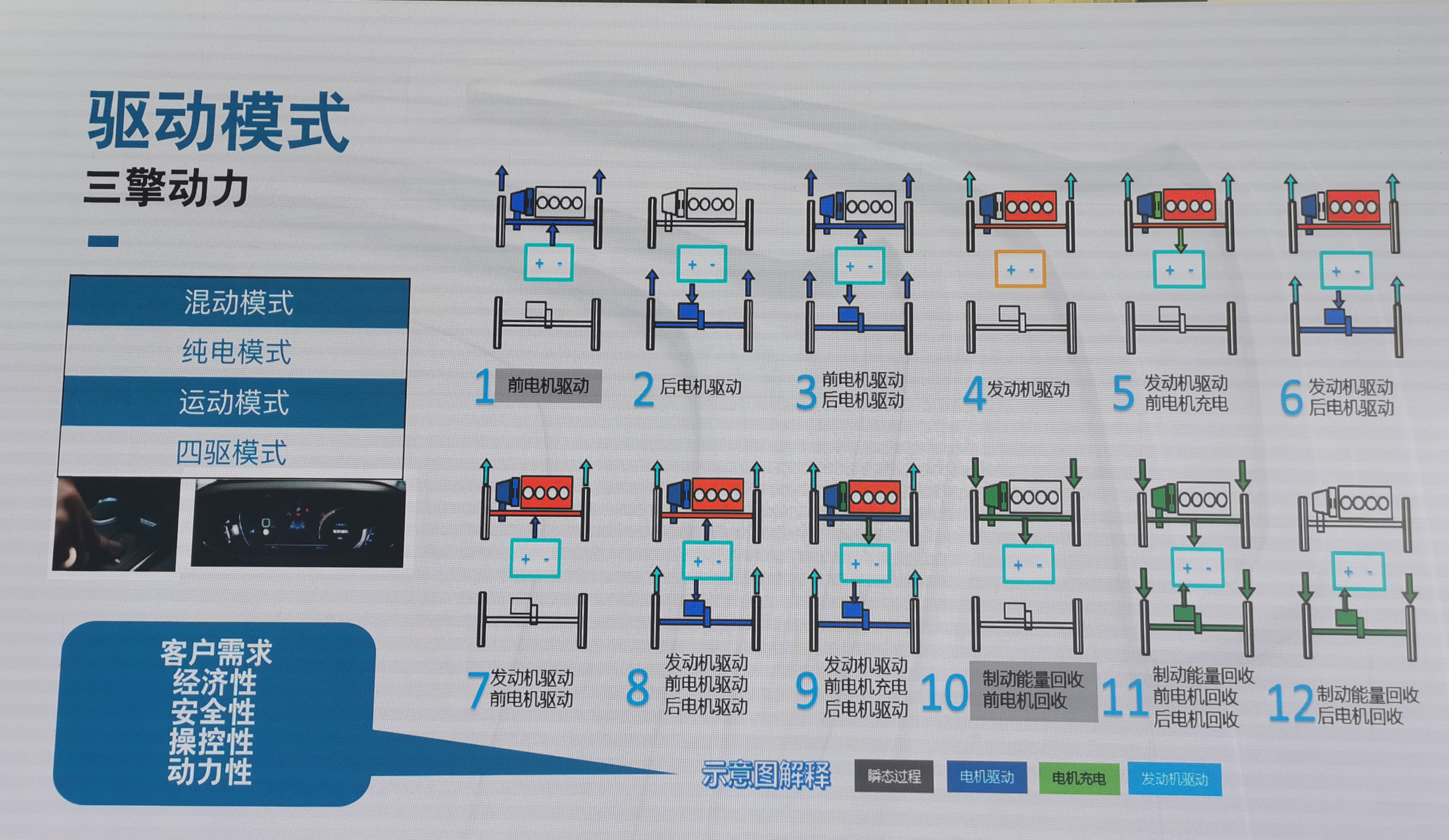 相比于它的外观,变化更大当然是行走机构方面。动力系统由三电机的混动系统和1.6T发动机组成,匹配的是来自爱信的8AT变速箱。整个动力系统能提供最大功率221千瓦,综合最大扭矩520牛·米。