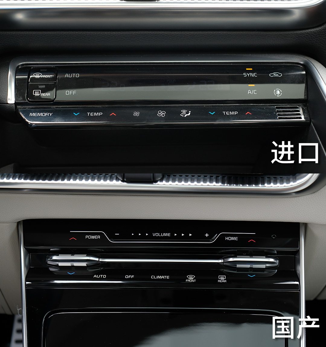 空调面板的区域也有所修改,国产版的K5采用镀铬式空调按钮,触控式音量面板也被整合到上方,设计上更具有一体感。