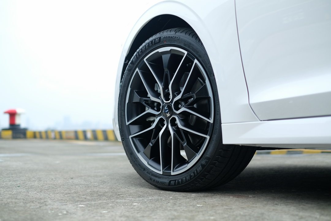 由于中国消费者偏好大尺寸轮毂,所以起亚给K5配备了19英寸的轮胎,在这台车型上配备的是米其林的PRIMACY 4静音舒适轮胎,规格为245/40 R19。