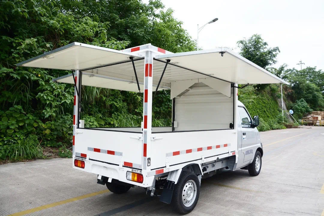 荣光翼开启这款车可以把货箱全部打开,多角度全方面展示货品,而且占地面积小,机动性强。它的整车高度2.26米,货箱空间容积达到5300L,而且电推杆配弹簧配置,摆摊的时候开启货箱更加轻松。
