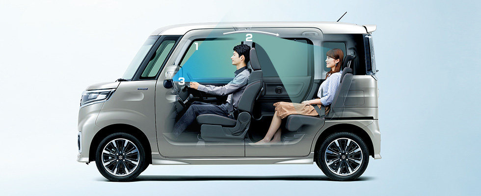 实际上K-CAR就是把“MM”理念发挥到了极致,长宽高都有了明确的规定,要在有限的尺寸里把空间发挥到极致,只能采用方盒子造型了。长度和宽度都规定比较极限,但是两米的车高就有很大的设计宽容度了。发动机舱尽可能短,把四个轮子放在车体四个角的地方,座椅坐姿高,目的是让乘客坐得更高,来弥补短车身带来的腿部空间不足。