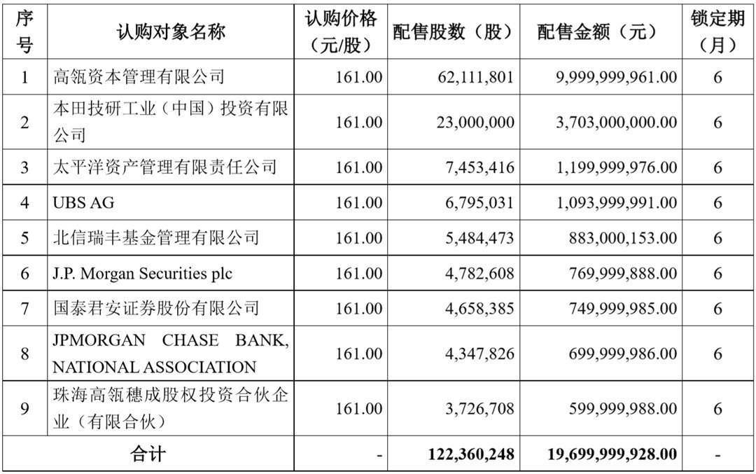 近日,宁德时代公布非公开发行股票情况。公告显示宁德时代本次发行股份数量约1.22亿股(A股),发行价格为161.00元/股,募集资金总额约197亿元。在最终获配情况中,高瓴资本认购约100亿元,本田认购约37亿元。近年来,新能源汽车行业发展迅速,动力电池需求出现高速增长,具备核心优势的中国企业竞争力在全球范围内持续增强,其中就包括宁德时代。值得一提的是,本田汽车除了认购宁德时代股份,双方还拟围绕动力电池的研究开发、供应、回收再利用等领域深化合作。看来,本田要在新能源领域发力了。