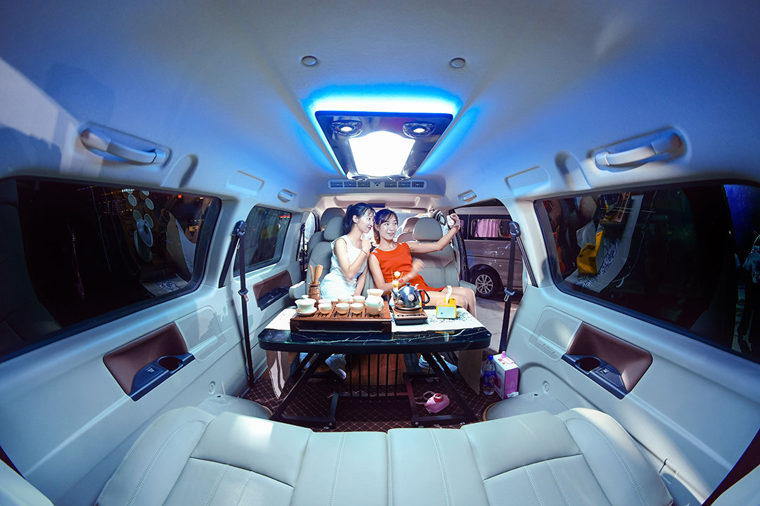 在移动商务洽谈室的体验点,我们看到新菱智M5的第二排座椅可以进行360°旋转,车厢便瞬间化为商务洽谈室,方便面对面进行交谈。精致的移动解忧杂货铺和移动花房不禁让人大开眼界,对于这创意十足的各式各样摊位,现场不少来体验的路人纷纷感叹道:“原来摊位还能这样玩!”