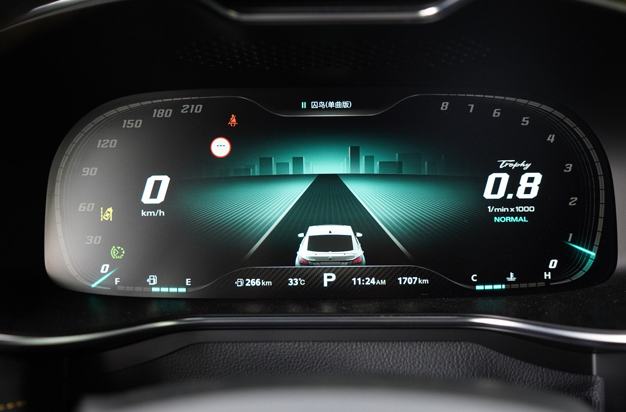 真皮方向盘两侧带打孔设计,D字型平底设计搭配右下方红色的驾驶模式选择按钮,时刻挑逗着驾驶者的驾驶欲望。12.3英寸全液晶仪表盘不仅显示清晰细腻,还带AR实景功能,科技感的水准还是很高的。