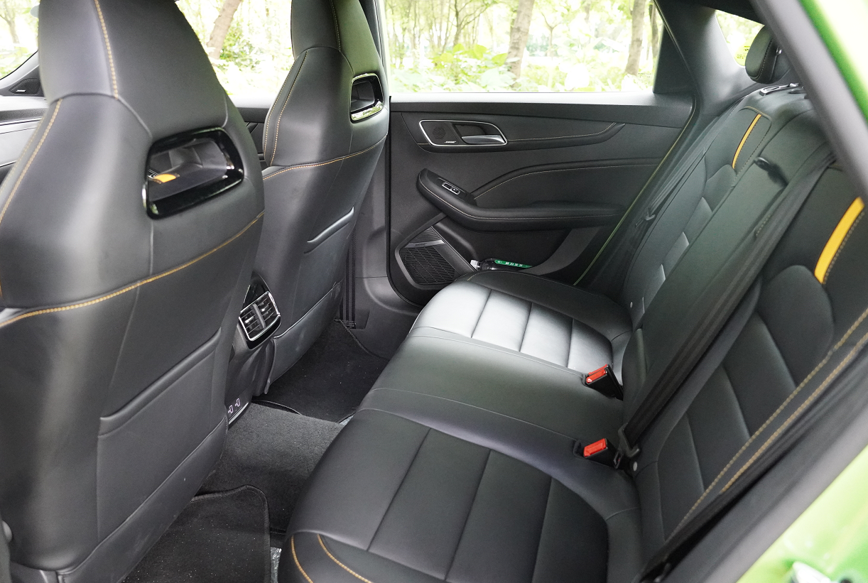 舒适性方面,前排玻璃还是双层隔音玻璃,在车辆的日常使用中能带来更良好的NVH表现,同时也能发挥出BOSE音响的出色体验。后排乘坐空间上,名爵6还是能提供足够用的车内空间给乘客,在同级别中其乘坐感受还是十分不错的。