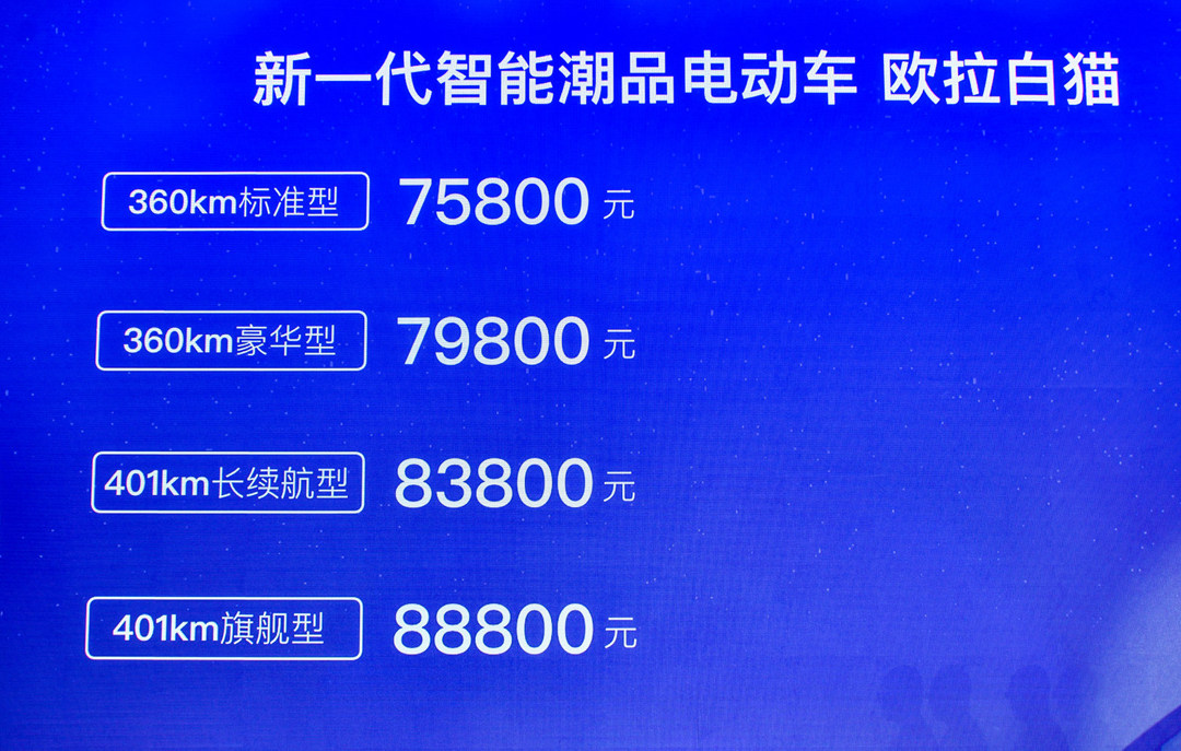 黑猫的最高续航里程或许与白猫一致,顶配车型的NEDC续航为405km。
