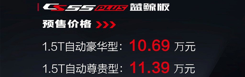 日前,长安汽车官方正式发布了长安CS55 PLUS蓝鲸版和长安锐程CC蓝鲸版的预售价,前者为10.69-11.30万元,后者为9.79-11.99万元。相比普通版车型,两款蓝鲸版新车均搭载了更运动化的外观套件,辨识度更高,而最明显的就是在车头和侧裙处加入了红色装饰条点缀,同时采用了更大尺寸的多辐式轮圈。当然,两款蓝鲸版最主要的升级就是搭载了长安最新的蓝鲸NE 1.5T发动机,最大功率为180马力,最大扭矩为300牛·米,性能比现款1.5T发动机有所提升,而传动方面CS55 PLUS 蓝鲸版有望匹配6MT或6速手自一体变速箱,锐程CC蓝鲸版则是匹配7挡双离合变速箱。