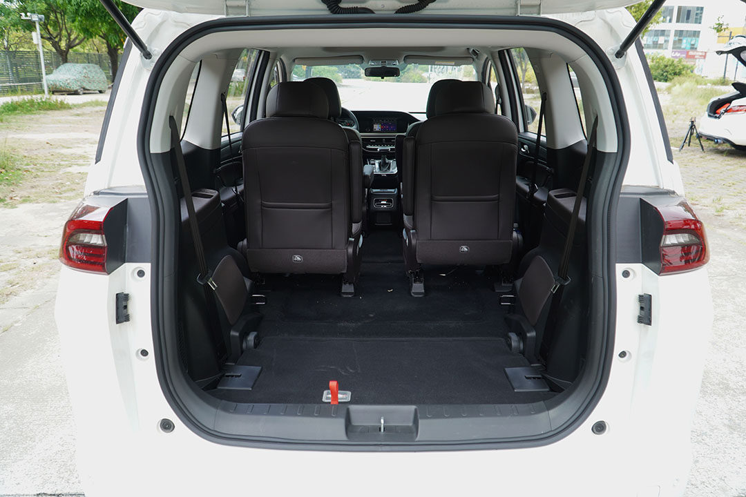 得益于尺寸上的优势,传祺GM6的空间表现也更加出色,整体的乘坐空间能够满足七人出行的需求。难得可贵的是,GM6的第三排可以巧妙的折叠起来,放到在尾箱下方深处的位置,从而形成了一个几乎全平的第三排,这种座椅的设计非常讨巧,具有一定的吸引力。