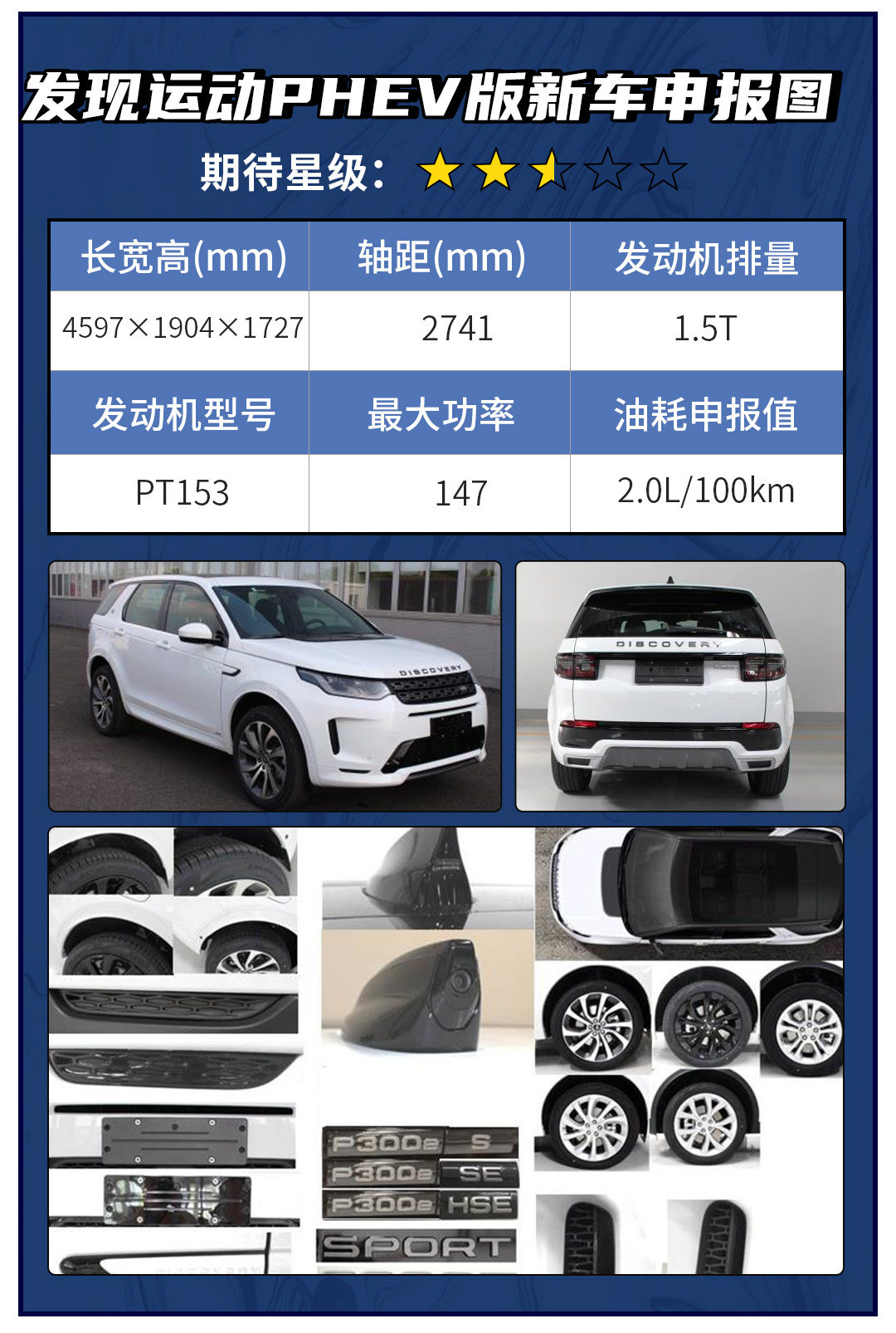 除了动力系统有所差别之外,发现运动版PHEV版与传统燃油版本车型没有太大的差别。作为插电版本,该动力系统由型号为PT153 1.5T三缸Ingenium汽油发动机+电动机组合而成,发动机最大功率200Ps,动力参数比较喜人。参考之前发布的海外版本,新车的综合续航里程为62km。三缸发动机的引入,很多车企都是比较谨慎的,所以路虎并没有大刀阔斧的引入三缸发动机,而是先期引入插电混合动力版本试探下国内市场。