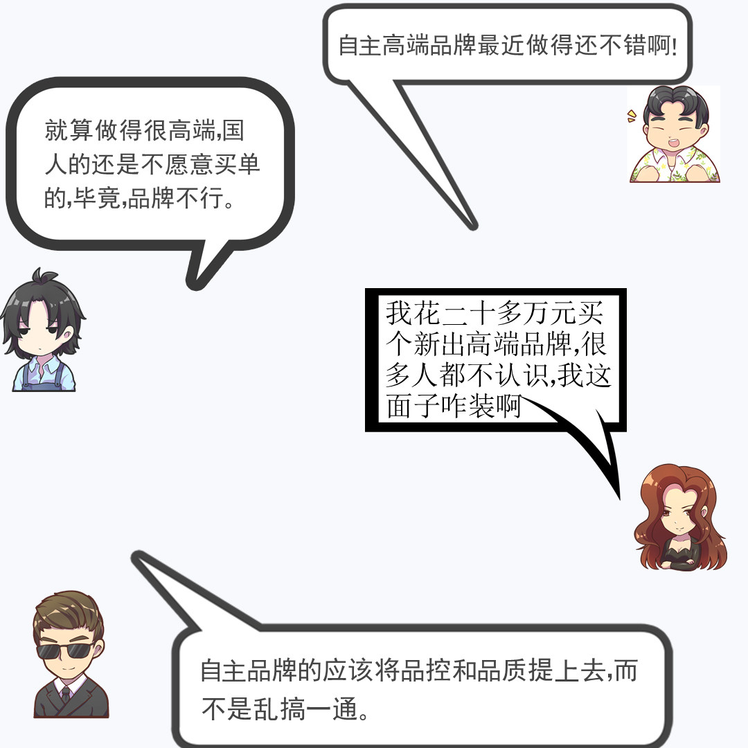 可见,一个品牌形象的好坏决定了国人心目中地位和看法,虽然性价比很高,但品牌所代表的意义,正是国人的“面子问题”!通俗点讲,买国产自主品牌,就会被人理解成没钱才会买国产自主品牌。