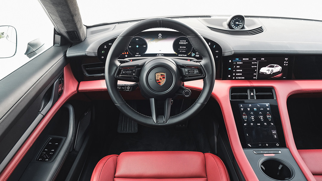 而在豪华品牌身上,它们更乐意使用多块独立屏幕组成一个极具视觉冲击力的全触控座舱;就像保时捷Taycan,其前排标配三块液晶大屏,副驾驶前方亦可选装屏幕,让其呈现一种如飞船座舱般的科幻观感。