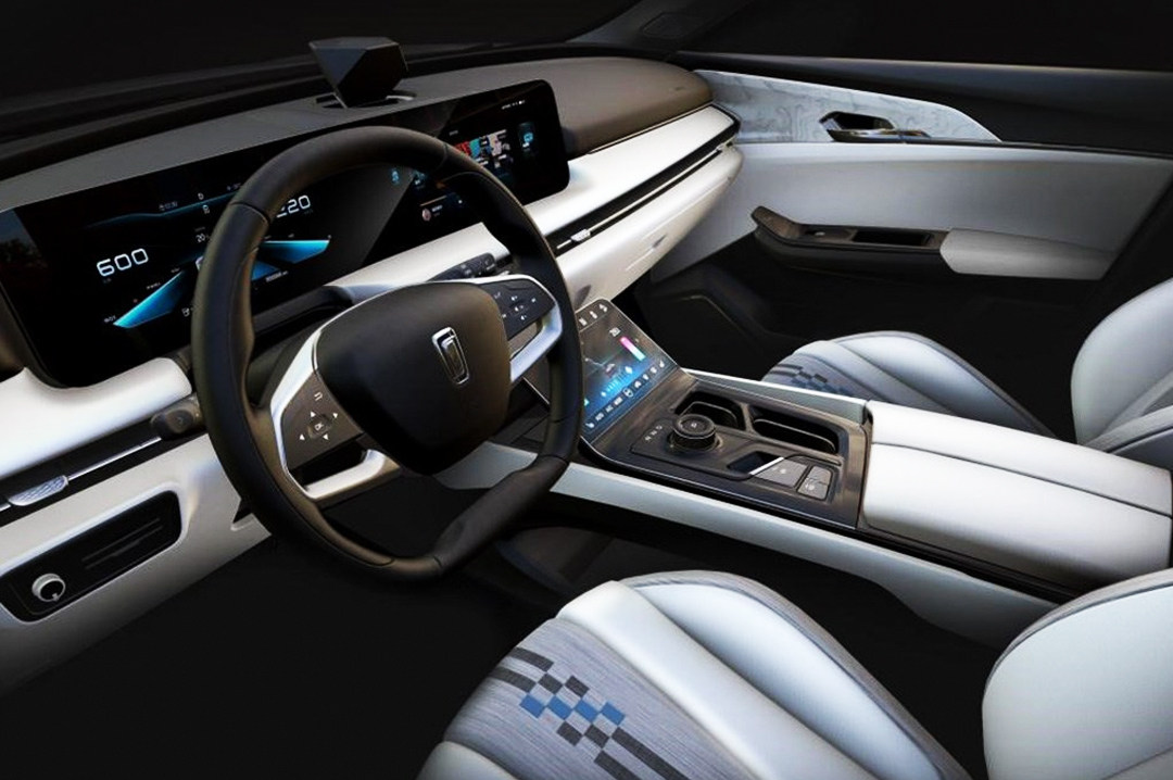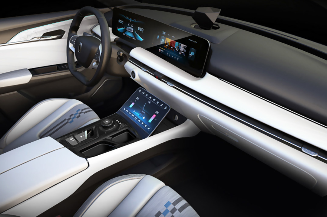 E01车型内采用环抱式座舱设计,整个座舱数字化程度较高,取消了大部分的物理按键,中控台打造出上下分层的效果。除了仪表采用了时下流行的贯穿式双屏设计,其空调控制区域更采用了8英寸多媒体屏幕。
