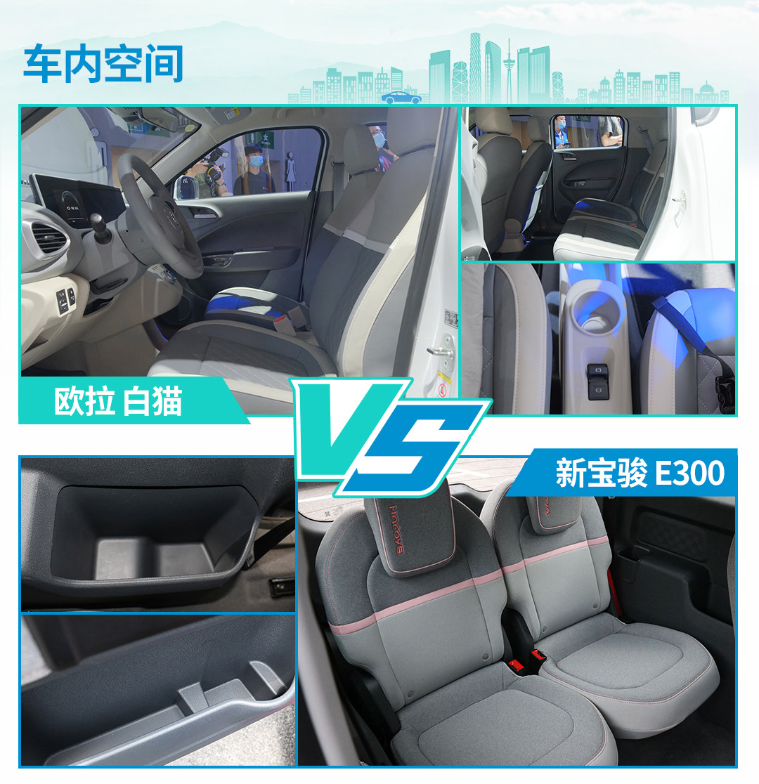 欧拉白猫和新宝骏E300是两台不完全同级的微型电动车,相比较之下新宝骏E300尺寸更小,但是其售价门槛更低,6.48万起比欧拉白猫的7.58万少了1.1万,价格也会更加亲民。