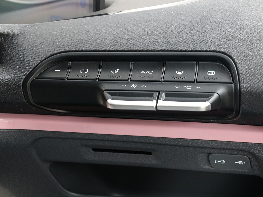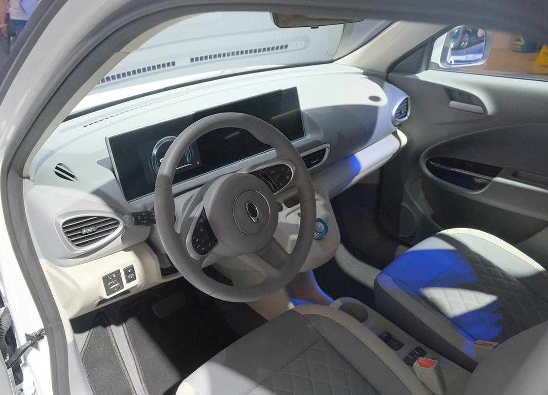 白猫长宽高分别为3625*1660*1530mm,轴距为2490mm,整备质量是1010/1032kg。该车基于ME纯电平台开发而来,针对车内空间优化具有先天优势,中央通道有手机无线充电板和水杯架、门板处有储物格、换挡旋钮上方还提供了个置物槽,旁边提供一个USB充电口,日常放置高速通行卡或者手机等会更加便利。