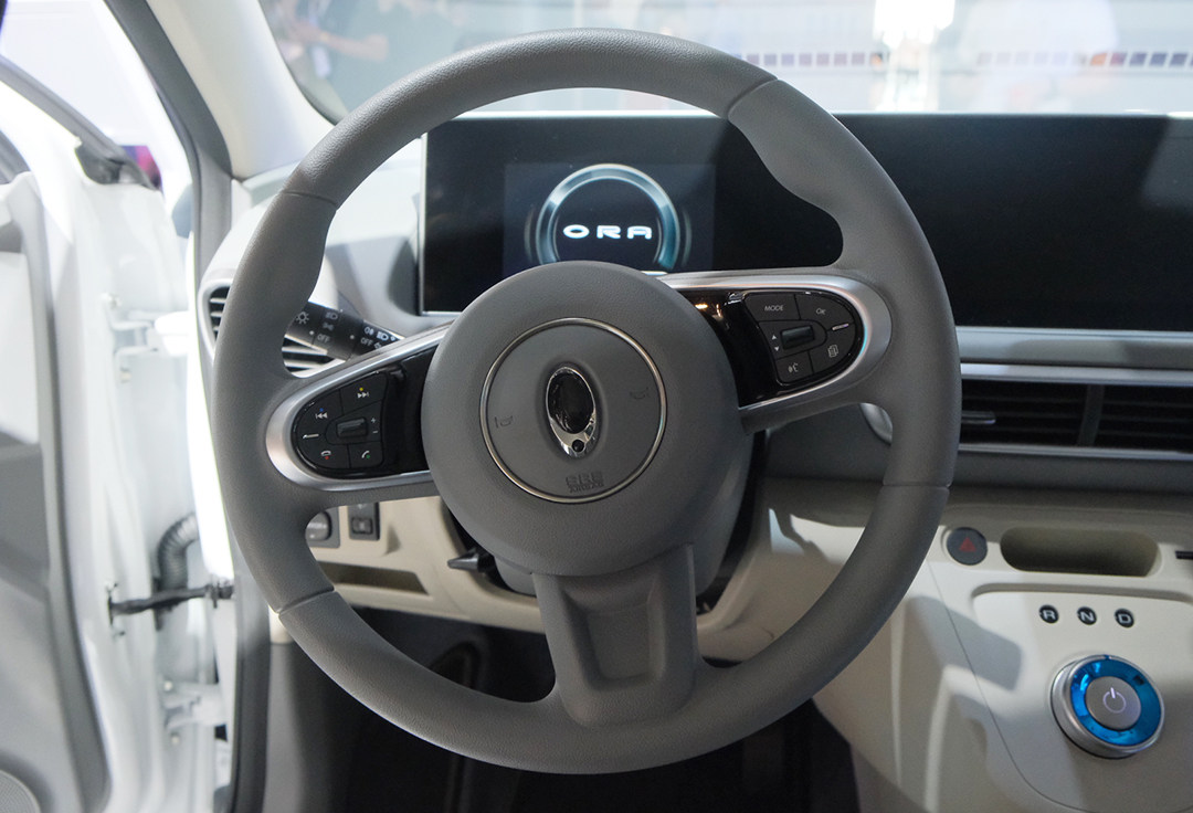 白猫的内饰遵循了欧拉一直以来对于极简风格的追求,除了中控台换挡旋钮和双闪灯按键之外,有关车辆设置的功能都被集成到23英寸的一体联屏上。