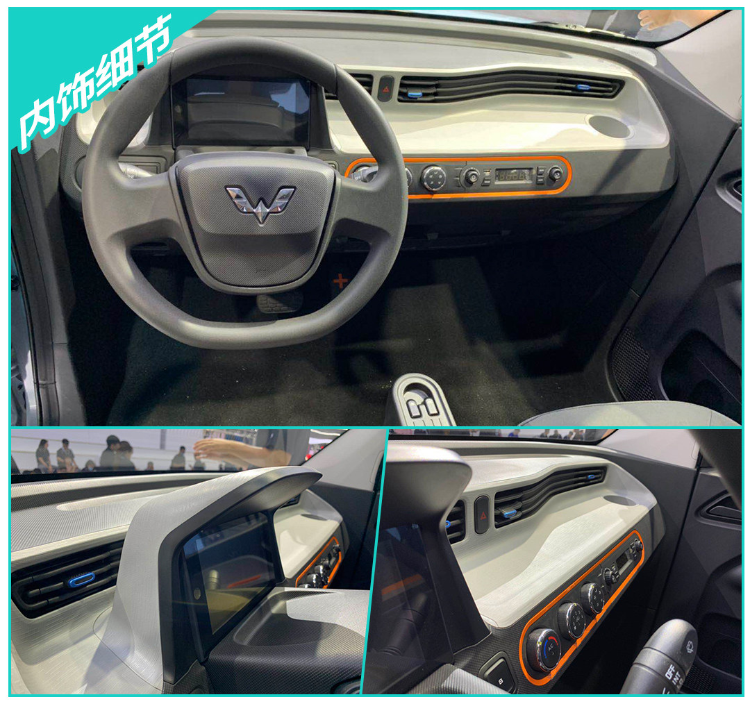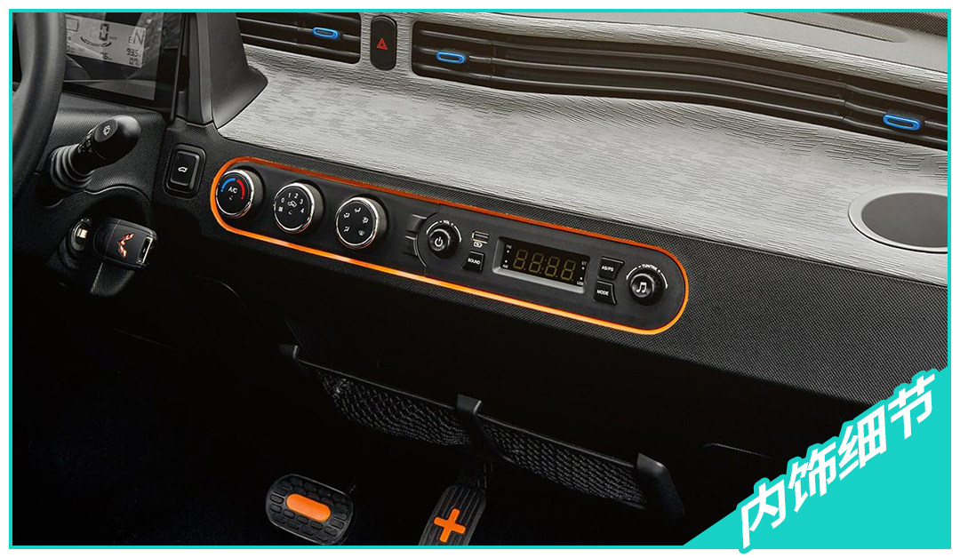 内饰布局简洁明了,一切以实用为主。宏光MINI EV配备彩色液晶仪表,液晶仪表能够显示更丰富的内容,诸如续航里程,车辆信息,车辆运行状态等都可以在该仪表中找到,可以说该液晶仪表盘是车辆与驾驶员沟通的唯一渠道。