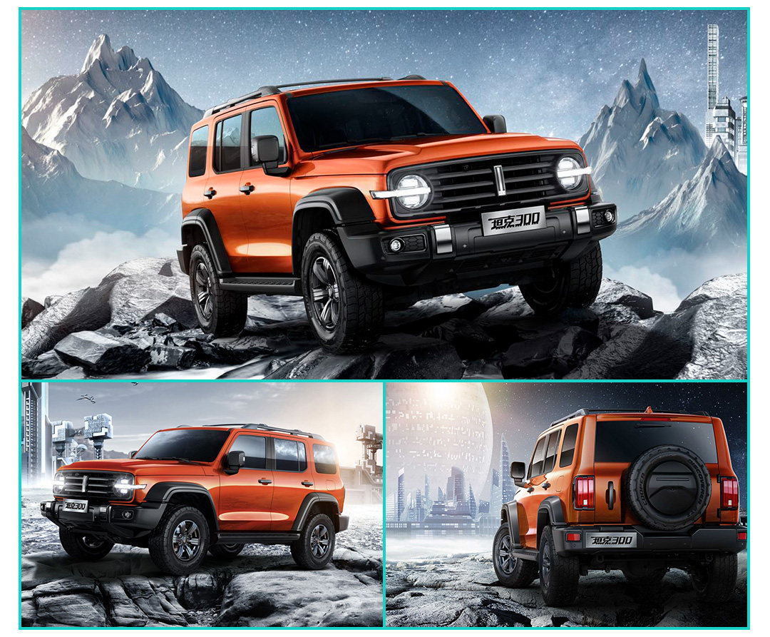 区别于WEY旗下的车型,新车在设计上自成一派。典型的方盒子设计,有着粗犷的车型风格,尤其是外挂式的全尺寸备胎。内饰方面,从官方图片来看,新车采用一体式连屏设计,空调出风口和方向盘细节上用橙色撞色搭配,以便让新车不会那么沉闷。至于动力方面,目前还没有具体的消息。