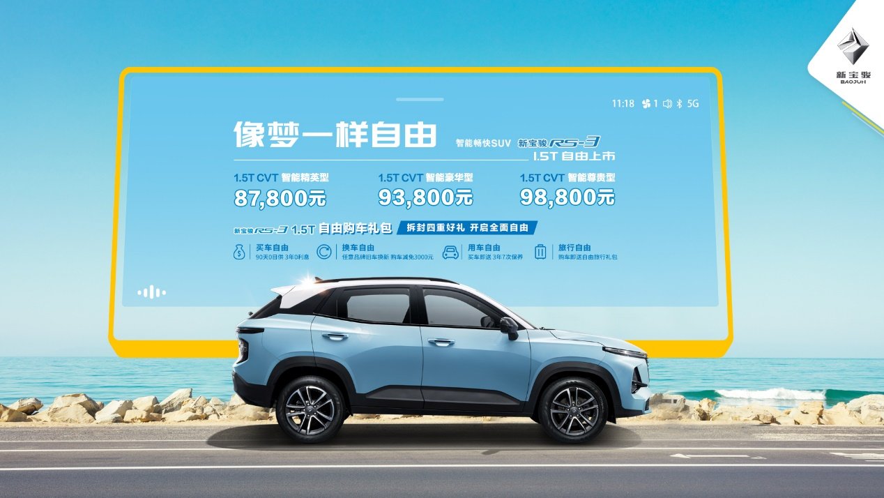 新宝骏RS-3带来自由购车礼包,拆封四重好礼,助力用户开启全面自由。90天0日供,3年0利息,实现买车自由;任意品牌旧车换新,购车减免3000元,实现换车自由;买车即送3年7次保养,实现用车自由;购车即送自由旅行礼包,实现旅行自由。四重礼包,超值惊喜,让用户自由畅享智能出行驾趣。
