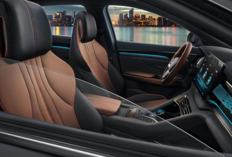 12.8英寸中控大屏依然支持90°旋转,车机使用的是比亚迪自主研发的第三代DiLink智能网联系统,无论观感还是实际显示效果均非常好。宋PLUS的高配车型搭载了环绕式无级调节氛围灯,该氛围灯自带31种颜色,同时还可以进行RGB色彩自定义无限拓展,该氛围灯的布局主要位于中控和门边的金属拉丝饰板下方。