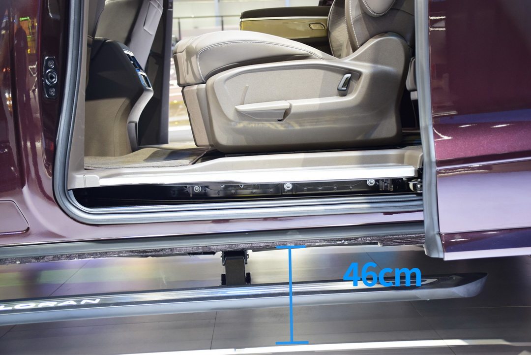 首从第二排的地台高度说起,别克GL8第二排的地台离地距离是40cm,而大众威然的则是46cm,为了让乘客更容易上车,大众威然增加了一个电动踏板。两者的便利性不相上下。