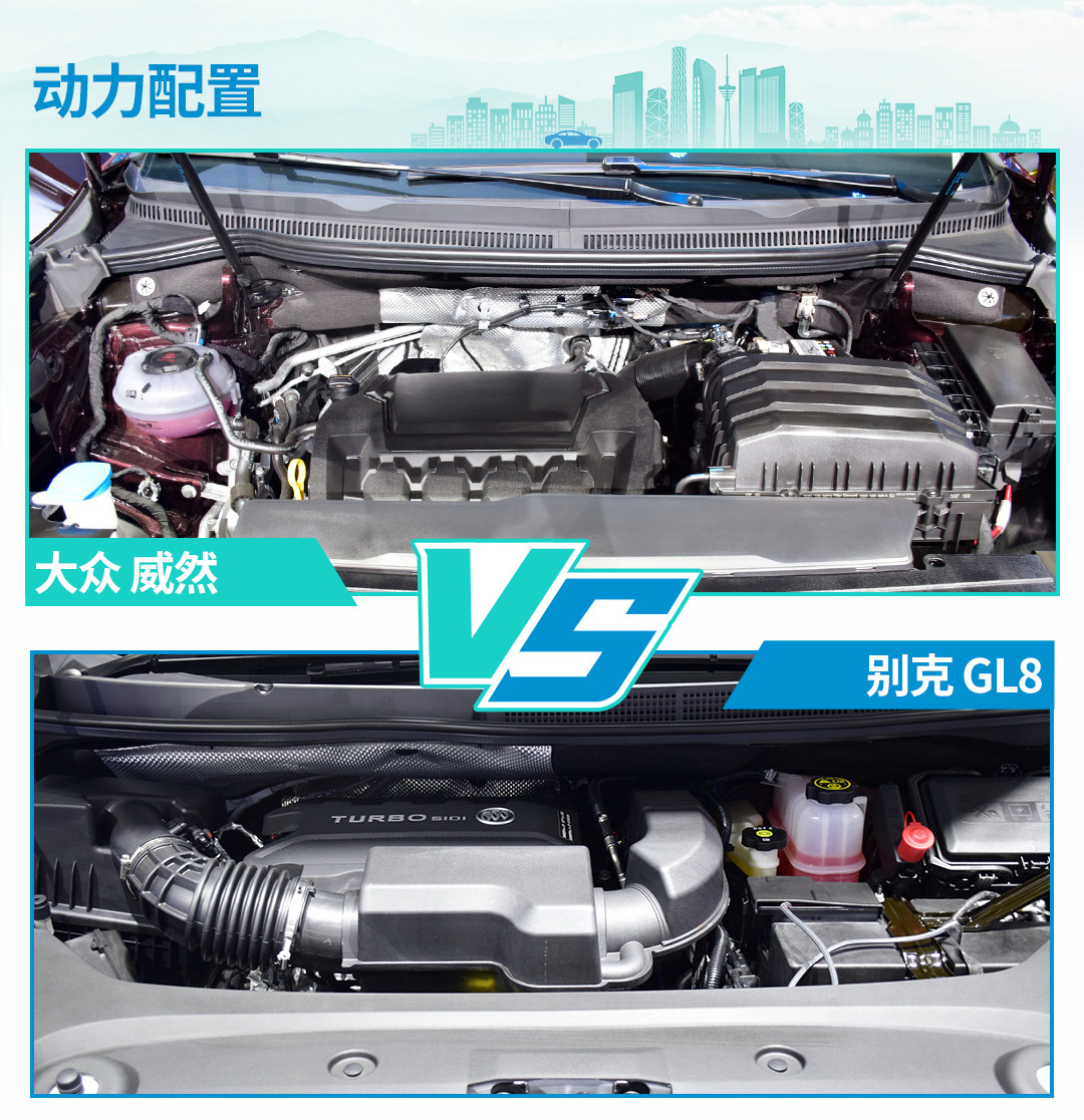 动力系统部分两者都是2.0T涡轮增压发动机,其中大众威然的最大马力是220匹,峰值扭矩350牛·米,威然的2.0T发动机带有双喷射技术、集成式缸盖技术,能够实现快速暖机,不同负荷下高效运行的作用。