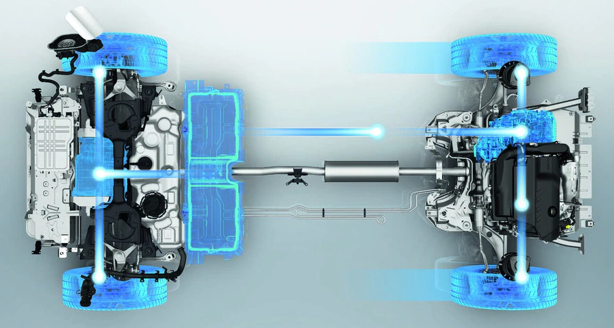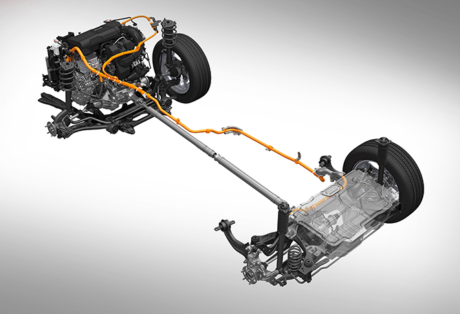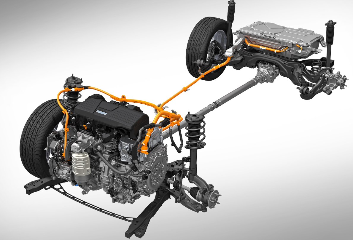 众所周知,CR-V 混动也有四驱车型,不过它的四驱与C5天逸 PHEV乃至RAV4 混动都不一样。从结构图可以看到,CR-V 四驱混动版是通过分动箱将前桥的动力,通过传动轴分配给后桥,不过本田在后桥配备了一个多片离合器式差速器,也就说后桥离合器断开就是两驱,结合就是四驱。