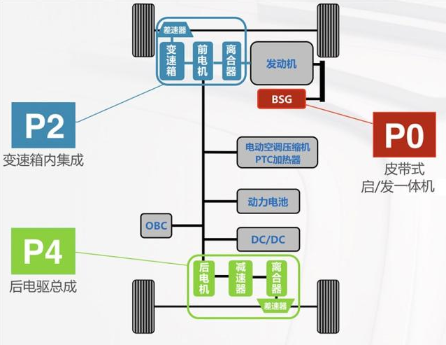 前面说过,这台车有3个电机,除了图中两个驱动电机外,第三个为BSG电机,负责启动发动机或发电。