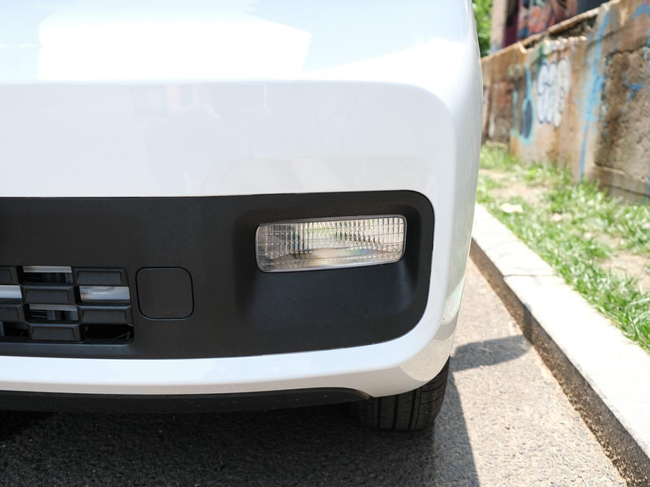 与其它微型电动车圆润风格相比,宏光MINI EV车身造型比较方正,中网黑色装饰其实是封闭式设计,两侧的卤素大灯支持高低调节,但远近光都不带透镜。