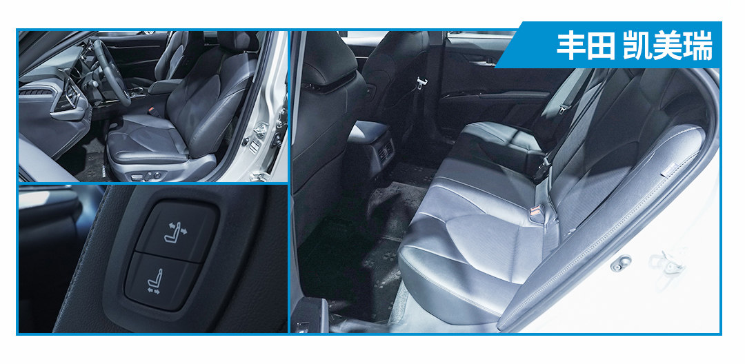 至于丰田凯美瑞,虽然它的轴距是三款车型中最短的,腿部空间表现稍逊一筹,但这并不影响它以出色的座椅人机工学设计获得优秀的舒适体验;座垫填充物加厚且柔软,对于乘客腿部的支撑性比较到位。不过,凯美瑞偏向于舒适性取向的座椅设计在运动包裹性方面表现稍逊于运动取向的索纳塔,在进行较激烈驾驶时对驾驶者身体的侧向支撑稍弱,因此凯美瑞归根结底还是一款以家用为主要使用需求的车型。
