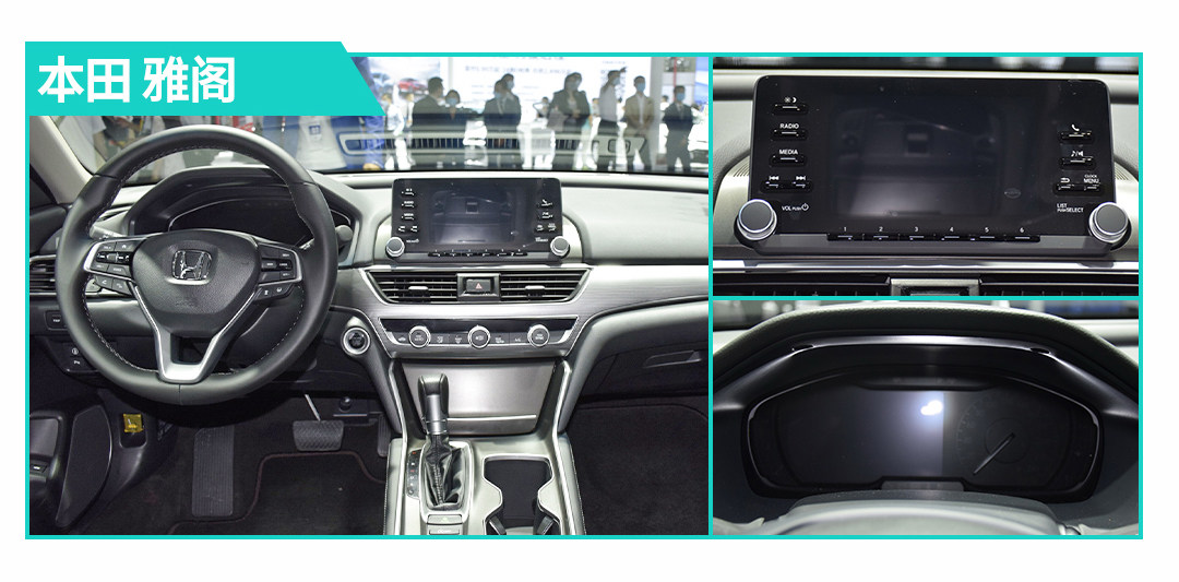 本田雅阁则采用了更加保守的内饰设计风格,对称式中控台以及悬浮式中控屏设计没有带来什么新鲜感,但十分耐看,容易被大多数消费者接受。在科技配置方面,除广受好评的Honda SENSING外,亦无更多亮点。