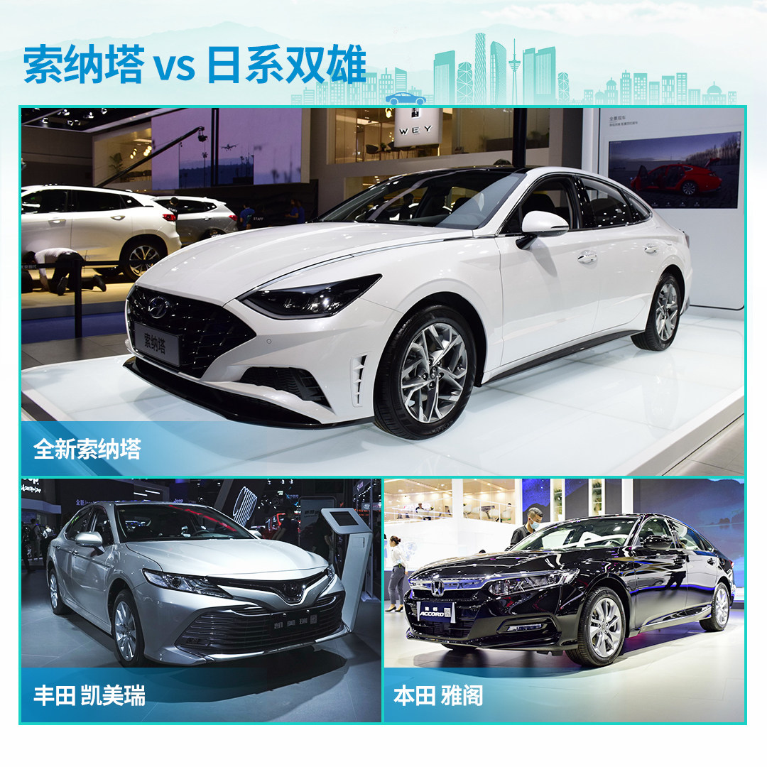 2020年成都车展正式拉开帷幕,在一众新车之中,韩系品牌推出的新一代中型轿车尤为值得关注。经历一段时间的沉寂之后,高调换代的韩系中型轿车能否在这竞争激烈的中型轿车市场中取得更多的市场份额?趁着车展,就让咱们到实地看一看,新近上市的韩系中型轿车代表现代全新索纳塔与目前市面上人气极高的日系中型轿车双雄丰田凯美瑞和本田雅阁之间存在什么差别,全新索纳塔又是否具有竞争力?