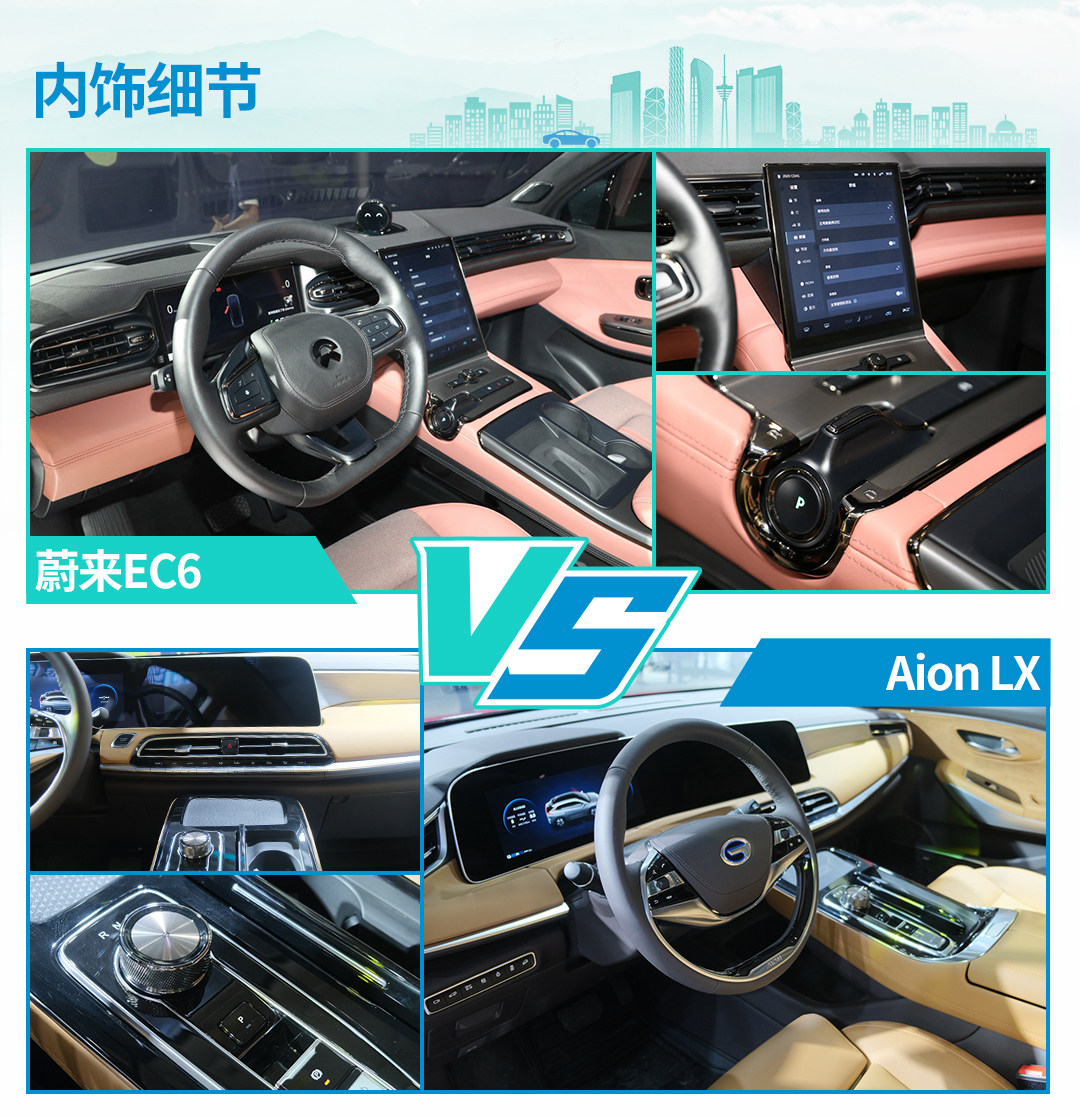 新能源新车一直不欠缺的就是对于内饰设计的天马行空,相比于传统品牌保守的设计而言,一个全新车系没有此前家族式设计的束缚,在设计上也可以更加大胆奔放。蔚来EC6与Aion LX都是如此,只不过,对于内饰的理解上,两者略有不同。