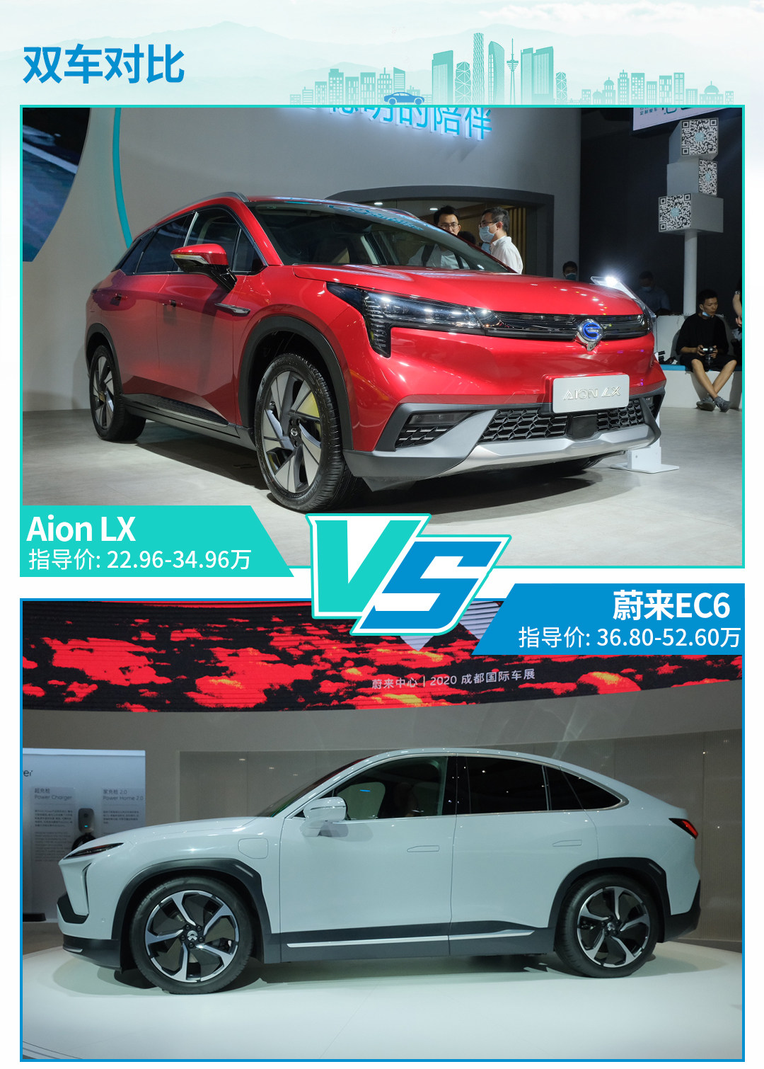 在这一背景下,在成都车展刚刚上市的蔚来EC6,以及去年年底上市的广汽新能源- Aion LX,也成了这一级别中不可小觑的新生军。迎着蔚来EC6上市之际,我们也来看看这对亦敌亦友的车型,究竟能碰撞出怎样的火花。