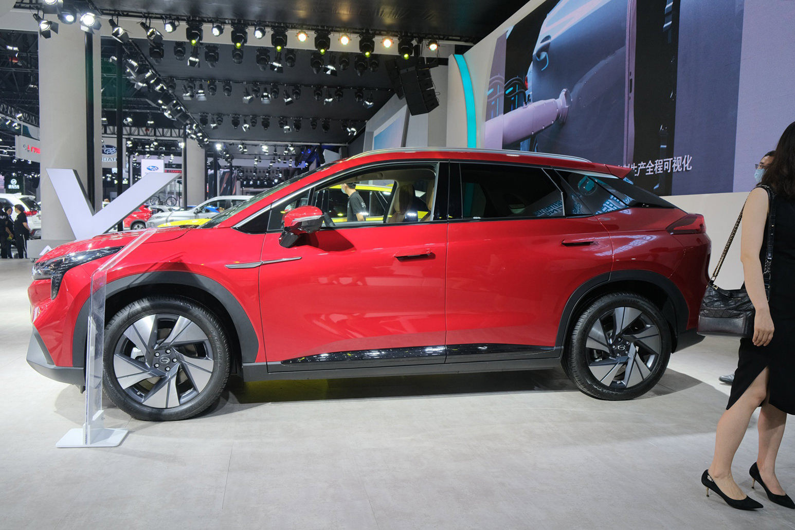 而Aion LX侧面同样充满着时尚动感,其采用了纯电动SUV常见的短车头长轴距设计,并且采用黑色车顶、黑色轮毂,整体运动感满满。而与蔚来EC6同样的隐藏式门把手,也极具科技美学,整体流畅顺滑的线条之下,其风阻系数也仅为0.288 。