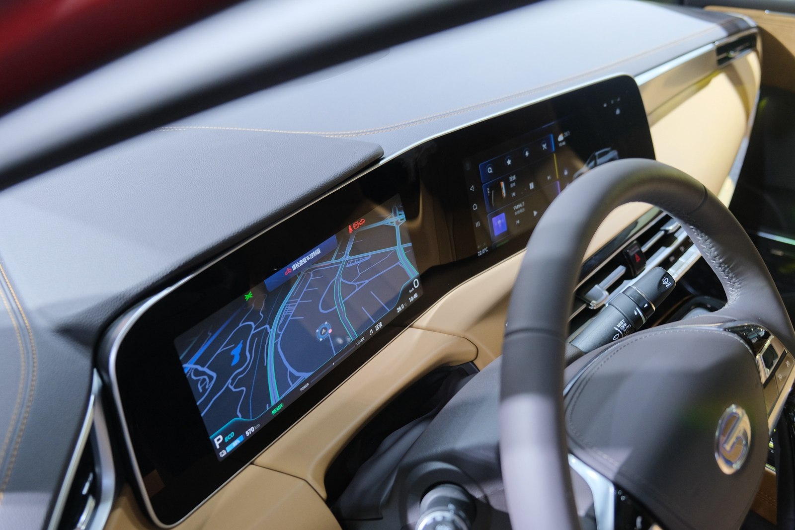 相比于蔚来EC6的超大中控屏,Aion LX采用了两块12.3英寸高清液晶屏打造出来的曲面一体化屏幕,使得整个中控以驾驶者为中心。并且全液晶仪表盘显示效果出色,中控大屏也采用了ADIGO 3.0系统,整体功能丰富直观。