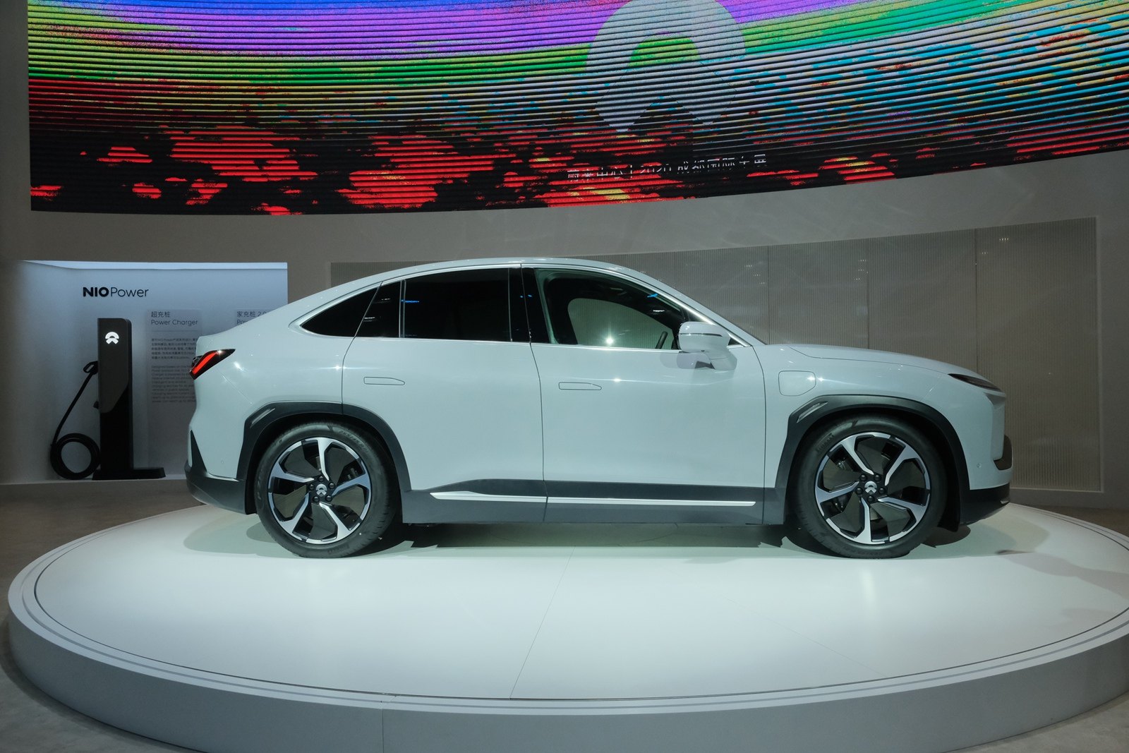来到侧面,才是这两款车真正非比寻常的地方,蔚来EC6前脸设计其实与蔚来ES6差别并不大,两者真正的差距其实体现在侧面。其采用了coupe风格设计,从车顶到车尾的线条都十分流畅,这样的设计也使得蔚来EC6的风阻系数仅为0.27。