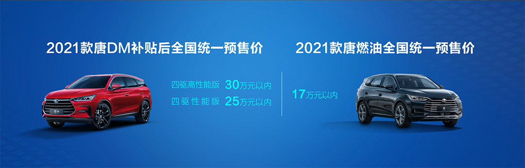 7月24日,采用了全新豪华内饰设计的2021款唐在成都车展正式亮相并开启预售。作为本年度最令人瞩目的旗舰SUV,2021款唐燃油预售价为17万以内,2021款唐DM四驱高性能版的预售价为30万以内、四驱性能版的预售价为25万以内。据官方消息,唐EV也将在今年下半年上市交付。