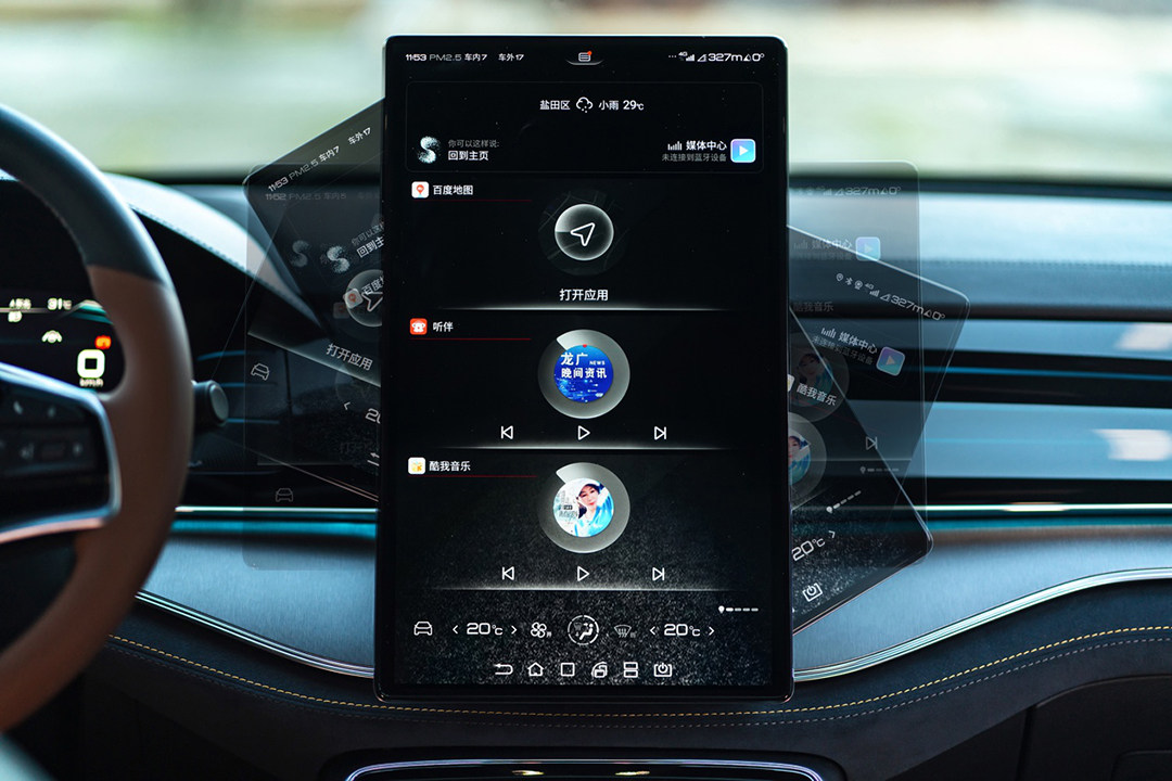 在智能网联层面,DiLink 3.0智能网联系统再度进化,搭载15.6英寸8核自适应旋转悬浮Pad,精致的超窄边框将旗舰车型该有的科技感体现得淋漓尽致。新车还采用了全新UI界面,搭建了更具交互感、更符合用户使用习惯的操作逻辑,并以灵敏度、识别率更高的语音交互系统构建了人车互联新模式,让驾驶变得游刃有余。
