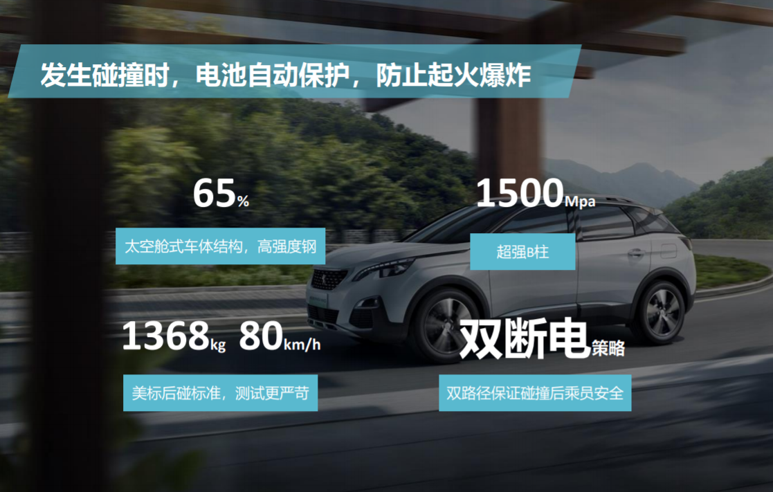 据悉,标致4008 PHEV的电池系统通过了长时间浸水、火烧、碰撞、严苛的盐雾测试等12项极限安全测试,测试结果优于国家标准。并使用双断电策略,当车辆发生严重碰撞时,系统会立即切断电源,最大程度避免自燃现象的发生。