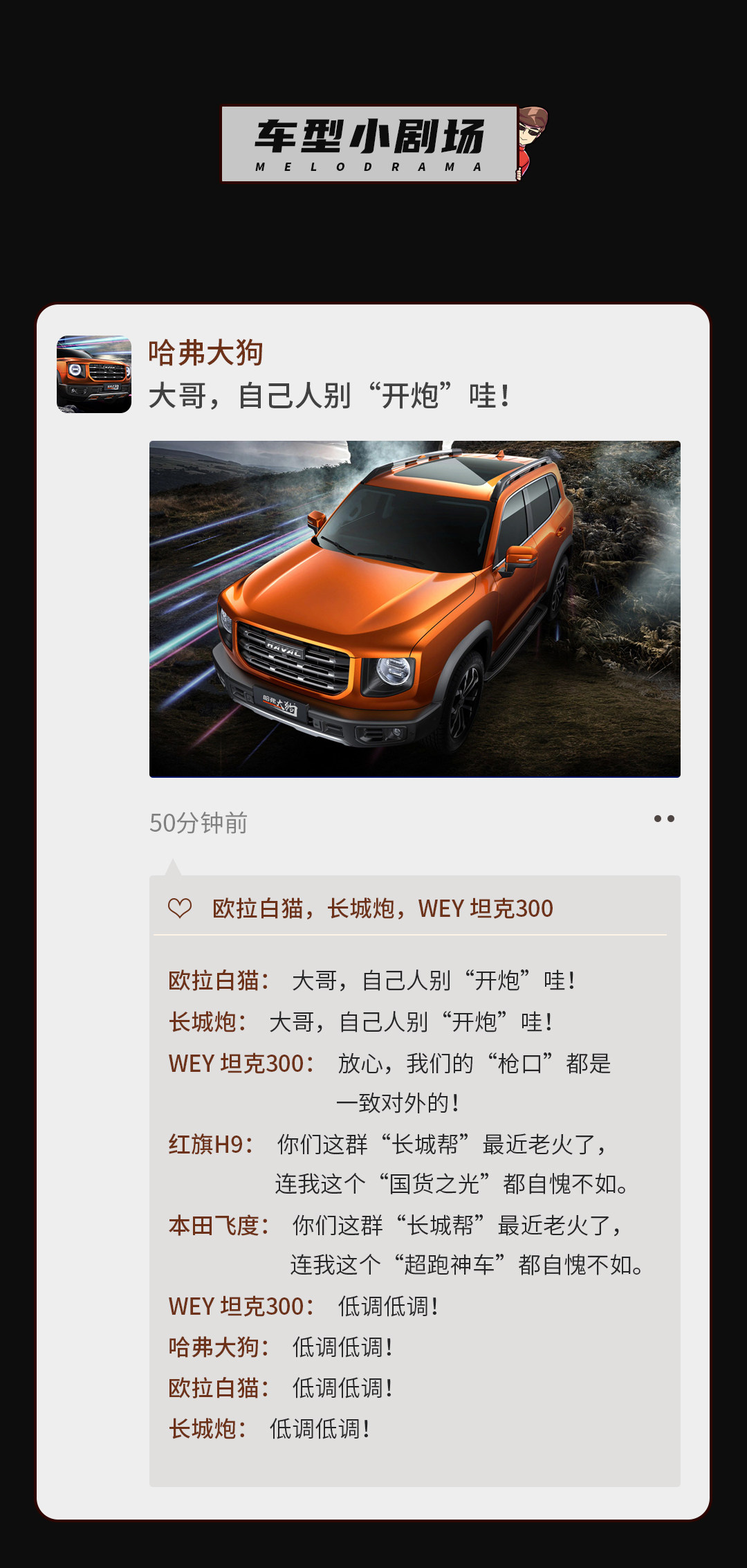 你有你的奔驰大G,我有我的哈弗大狗,不是很大,但是很狗🐶 。喔,不好意思,跑错片场了![捂脸][捂脸][捂脸]