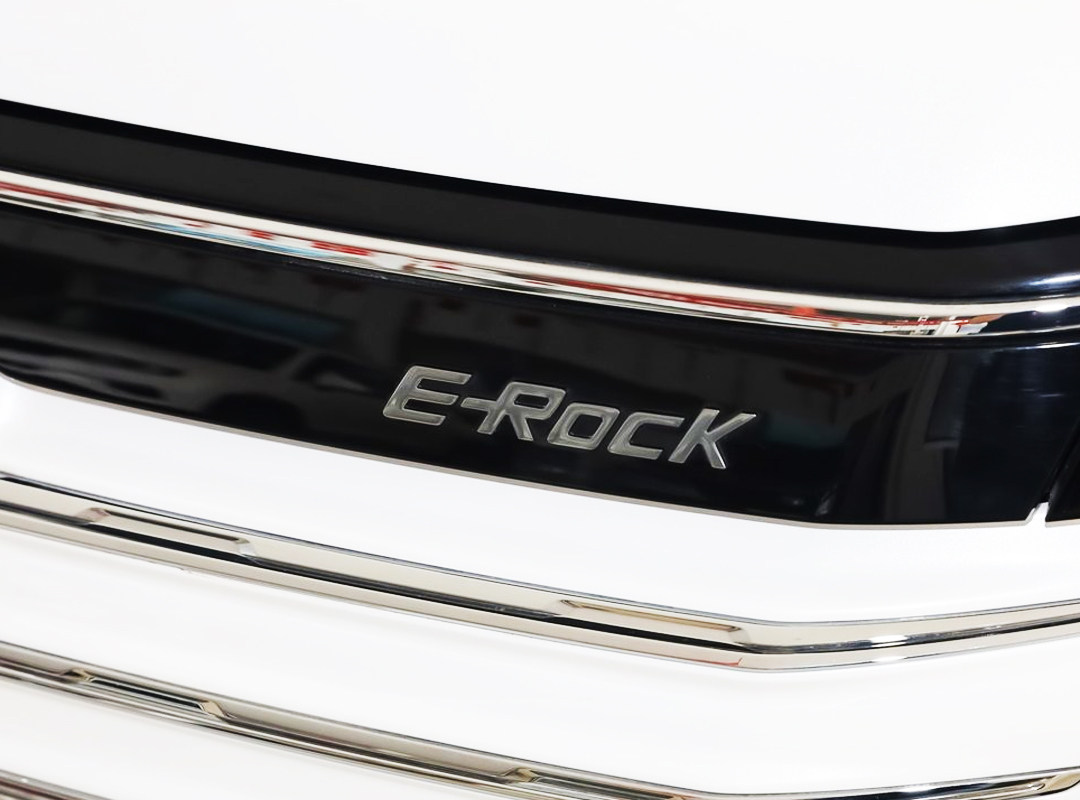 作为一辆纯电SUV,由于车辆自身属性的原因,前脸部分采用了当下纯电车主流的封闭式前格栅设计,远近光一体的LED大灯、横幅镀铬饰条、配有“E-Rock”标识,这些元素都在为整车的纯电属性点题。