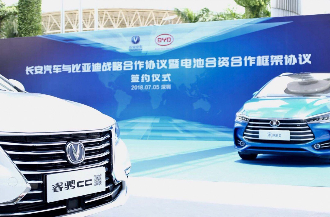 2018年,长安汽车和比亚迪汽车先后签署战略合作协议,分别在三电系统、电池等方面达成了战略合作。