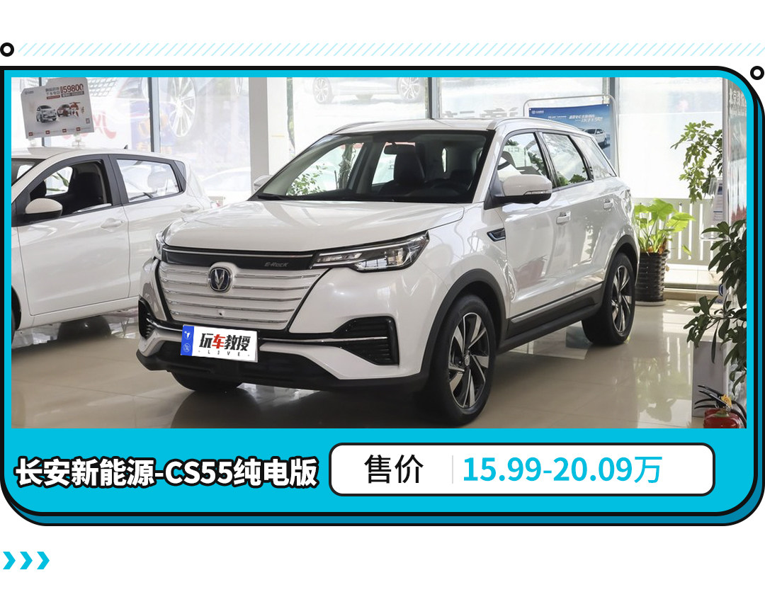 长安CS55纯电版上市后,定价为15.99-20.09万元。这个价位段中,目前大多数纯电SUV车型的续航都在400-500km范围内浮动,605km的续航对于不到二十万的纯电SUV来说,已然是CS55纯电版的亮点。