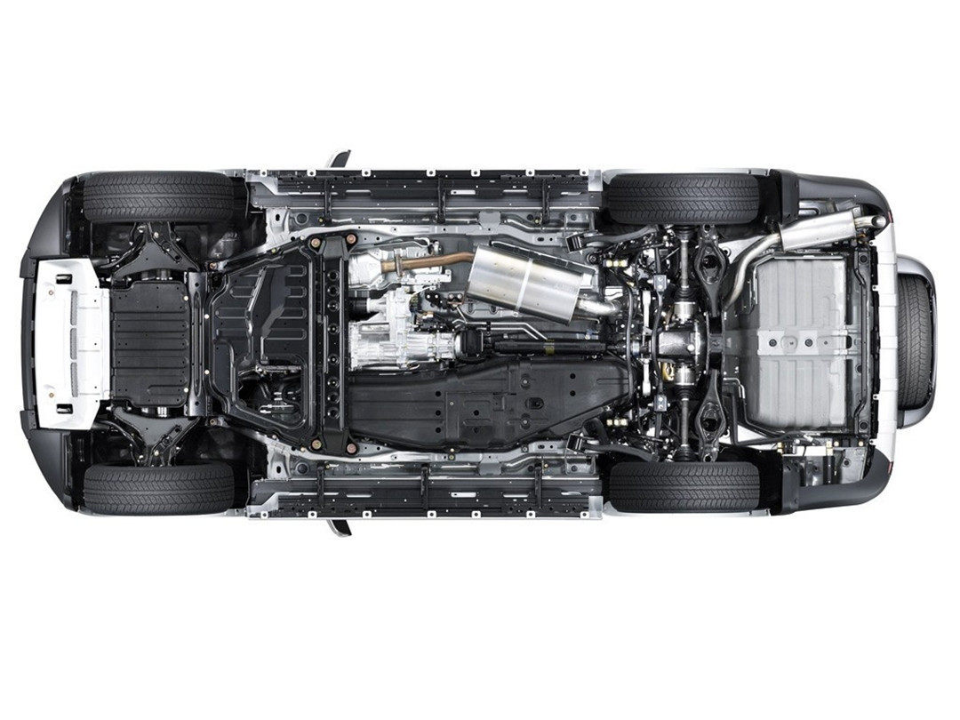 第二代帕杰罗依旧采用非承载式底盘、前独悬+后整体桥,但这代外形更加圆润,且搭载三菱第一代超选四驱,其好处是兼得了全时四驱和分时四驱的优点,既能像全时四驱那样由系统自动分配前后轴动力,降低操作难度,又能像分时四驱那样切换带两驱模式提高经济性。