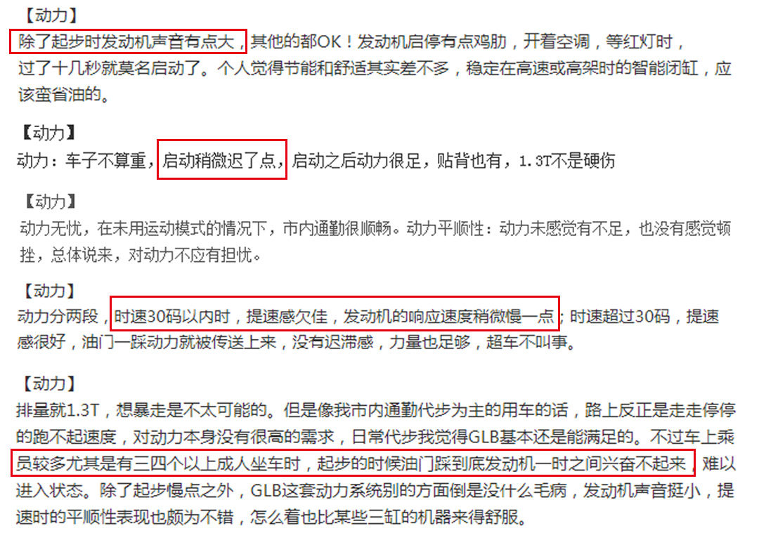动力是困扰很多潜在买家的最大难题,买买君之前也试驾了高功率版GLB。从实际体验来看,动力谈不上多充沛,但满足日常使用问题不大,受小排量的限制,在起步阶段,提速稍微欠佳,但当涡轮介入之后,体验会好不少。