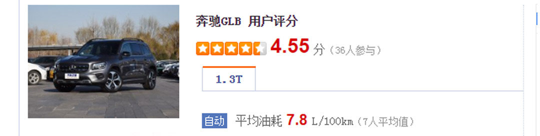小排量+闭缸技术的加持,让GLB确实有着相对较好的燃油经济性,我们从汽车之家车主口碑处了解到,车主平均油耗为7.8L/100km。