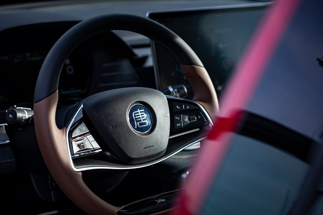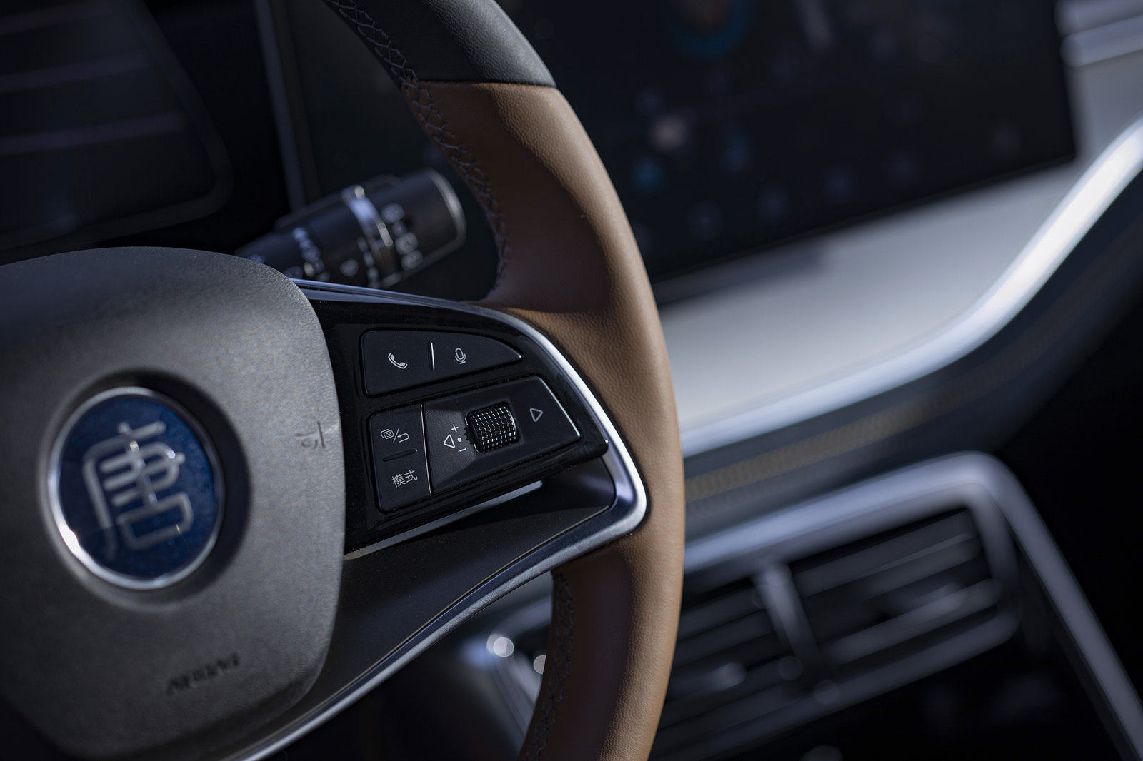 众所周知,影响一款车操控性能的因素有非常多,转向和底盘调校便是其中的重要一环。新款唐DM换装了全新方向盘,双辐式加上撞色以及饱满的握径设计,既有格调,又显得稳重成熟。